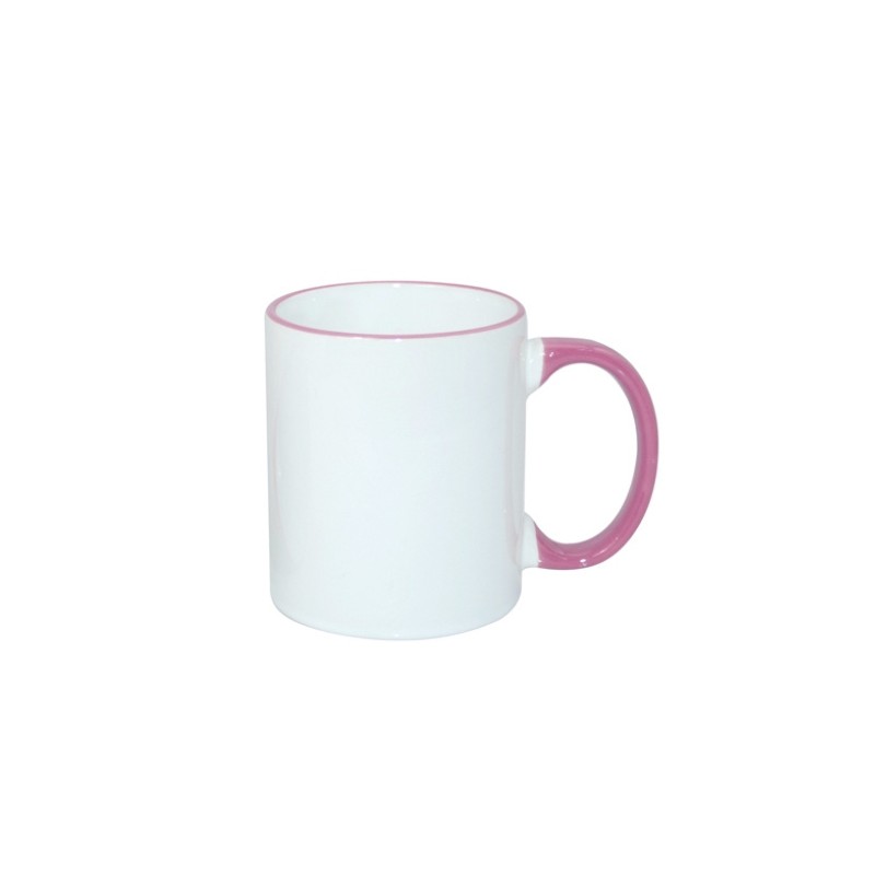 Kubek biały z kolorowym dodatkiem (rant+ucho różowy)