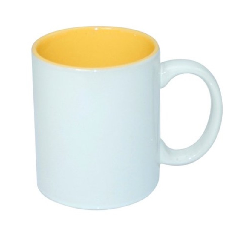 Kubek biały z kolorowym dodatkiem (wnętrze złoto żółte)