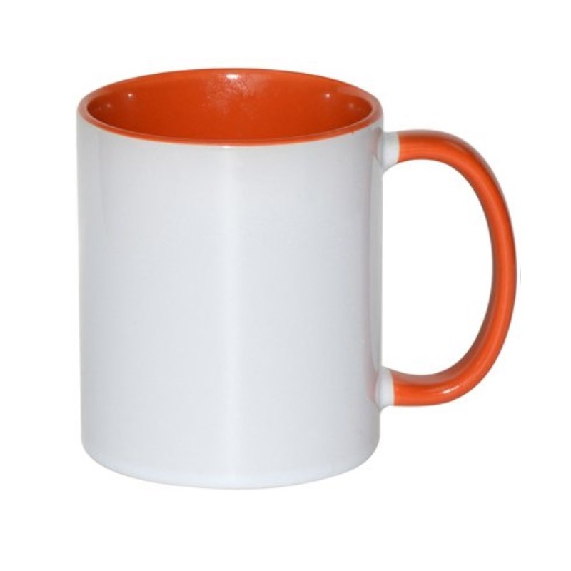Kubek biały z kolorowym dodatkiem (wnętrze+ucho pomarańczowy)