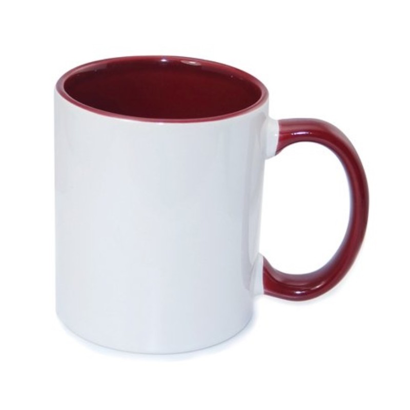 Kubek biały z kolorowym dodatkiem (wnętrze+ucho bordowy)